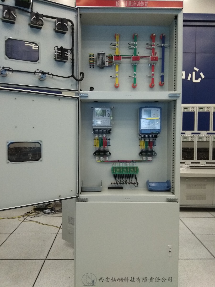 高壓電能計量培訓裝置和低壓電能計量培訓裝置主要針對電能計量進行各方面的練習培訓,可作為電能計量的研發(fā)設備。裝置采用最常用的配電柜柜型GGD柜。 高壓電能計量培訓裝置配備計量設備如高壓互感器,熔斷器等,裝置包含所有高壓計量方式,可以裝接三相有功表、無功表以及終端或集中器。低壓電能計量培訓裝置可以裝三相四線的有功表、無功表,三相四線的終端或集中器,后操作面為低壓配電箱的計量方式,可以安裝三相四線的有功表、無功表,單相表,帶互感器的單相表。