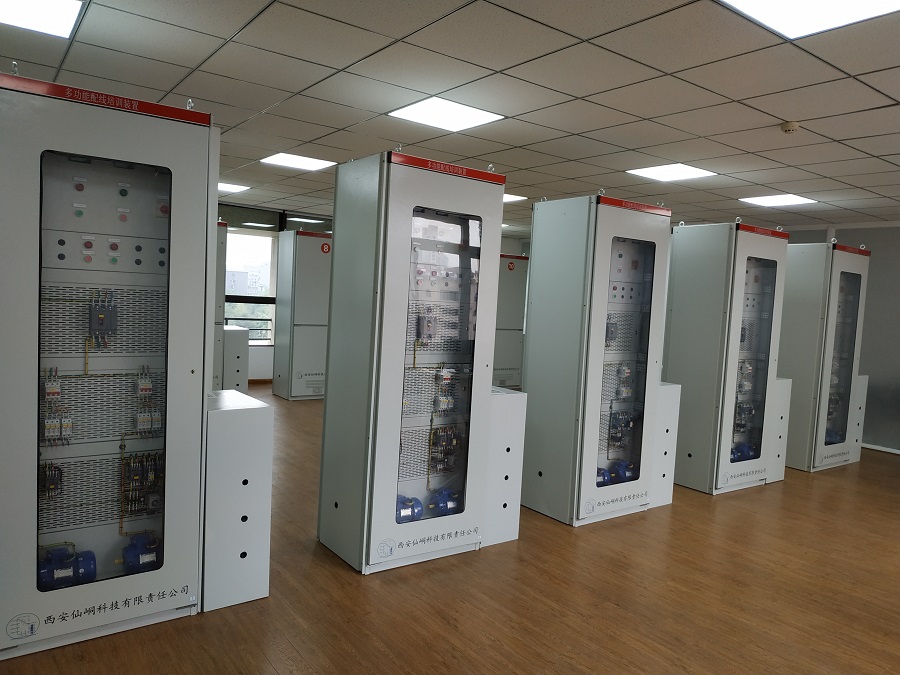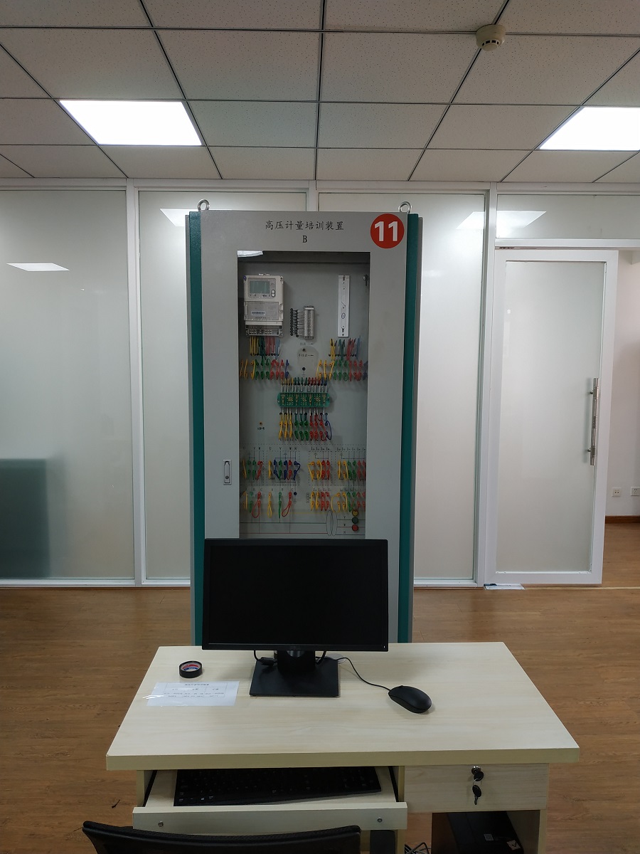 多功能配線裝置采用空屏柜,正面放置鋼制網(wǎng)孔板分為上下兩部分,上面進(jìn)行參數(shù)顯示合閘、分閘及帶電指示,下面進(jìn)行電機(jī)接線培訓(xùn),背面為低壓三相四裝表接電練習(xí),配有10/5電流互感器,接線盒,假表尾等,專門為電力部門維修電工、內(nèi)線安裝工、裝表接電工、用電檢查、通用電工及農(nóng)網(wǎng)配電營業(yè)工等專業(yè)人員進(jìn)行技能培訓(xùn)與考核而設(shè)計(jì)。采用實(shí)際安裝配線,實(shí)現(xiàn)低壓用電、電能計(jì)量及電動(dòng)機(jī)控制電路的安裝配線操作,通過培訓(xùn),使維修電工、內(nèi)線安裝工、裝表接電工、用電檢查、通用電工及農(nóng)網(wǎng)配電營業(yè)工等學(xué)員熟悉各類配線規(guī)程,熟練掌握配線工藝及流程,提高實(shí)操水平。