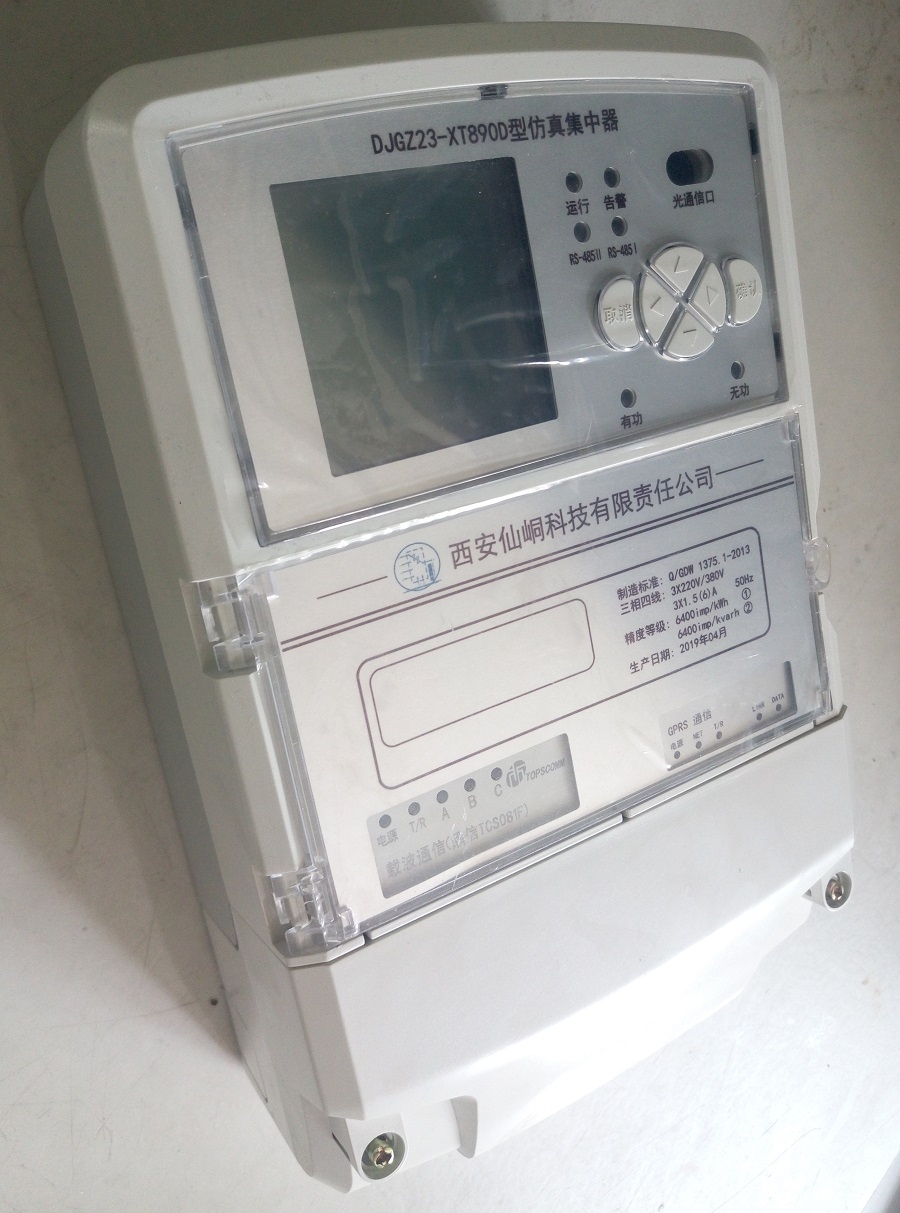 DJGZ23-XT890D型仿真集中器采用高速32位嵌入式處理器高性能CPU,通過RS458 或者載波通信等方式,定時抄收單相載波電能表、三相多功能電能表的數據,進行處理分析,并能根據主站設定,將月末零點凍結電量、日零點凍結電量、重點戶數據及異常告警信息主動上報主站。